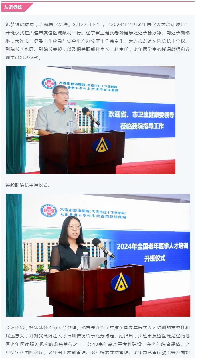 【友谊登峰】2024年全国老年医学人才培训正式开班