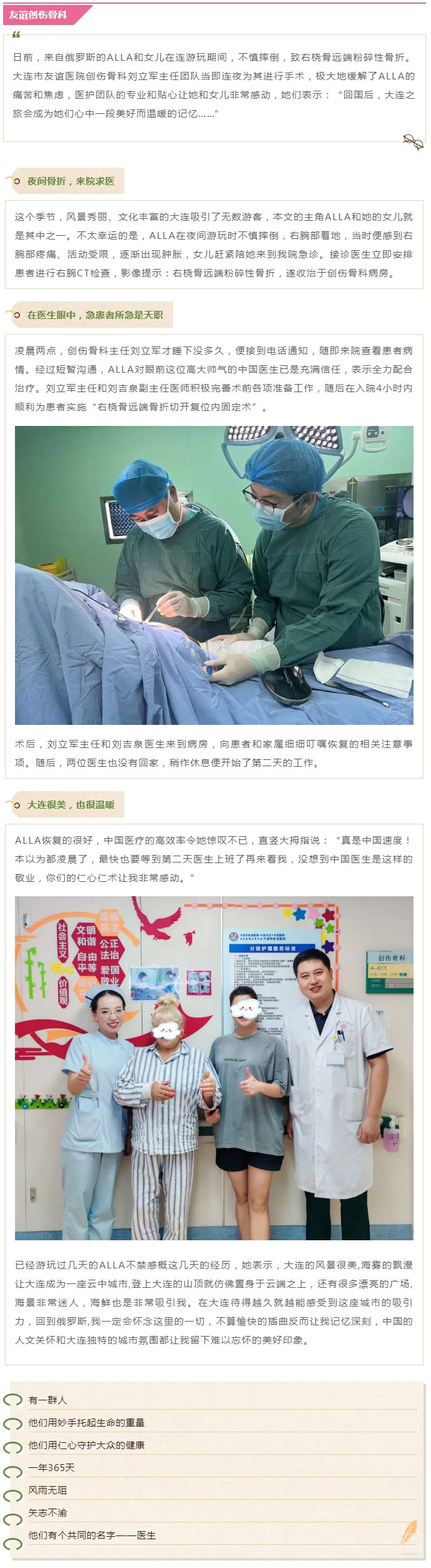 【友谊创伤骨科】凌晨手术,俄罗斯游客点赞中国医生!