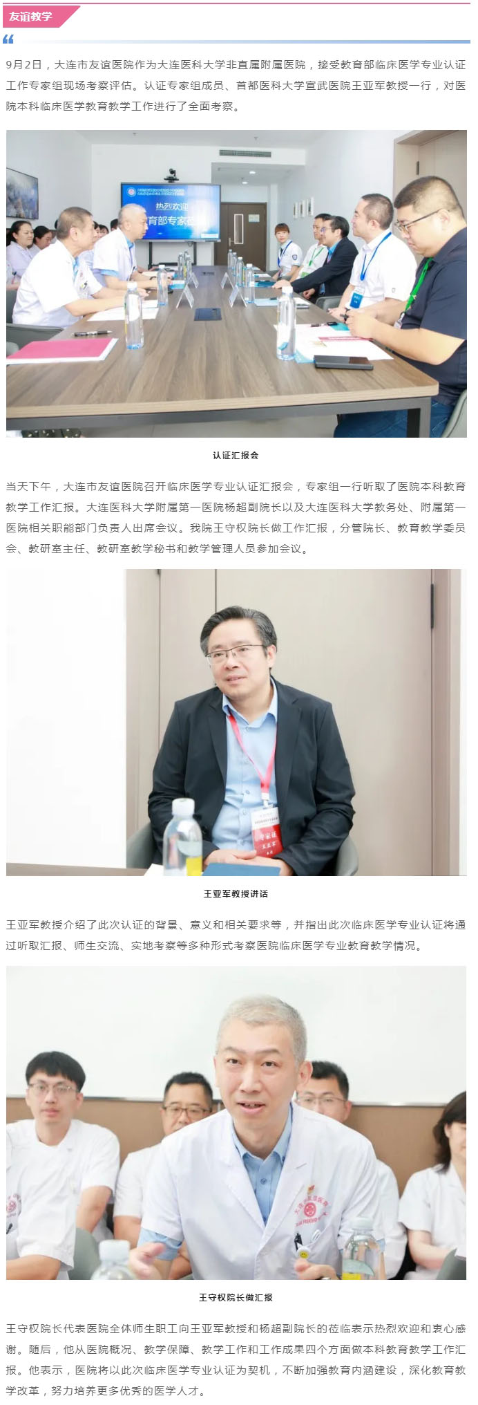 导读:【友谊教学】大连市友谊医院接受教育部临床医学专业认证