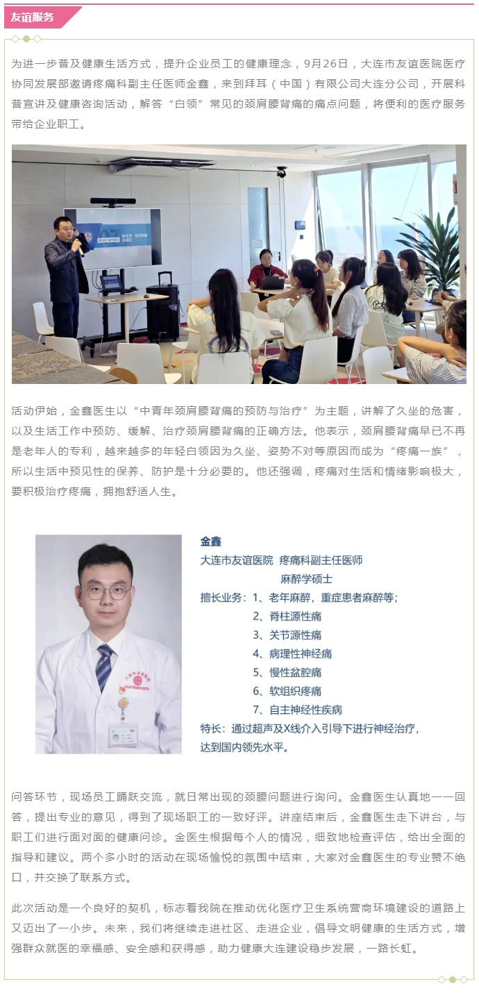 【友谊服务】医生进企送健康,解答职场人的“疼痛”难题