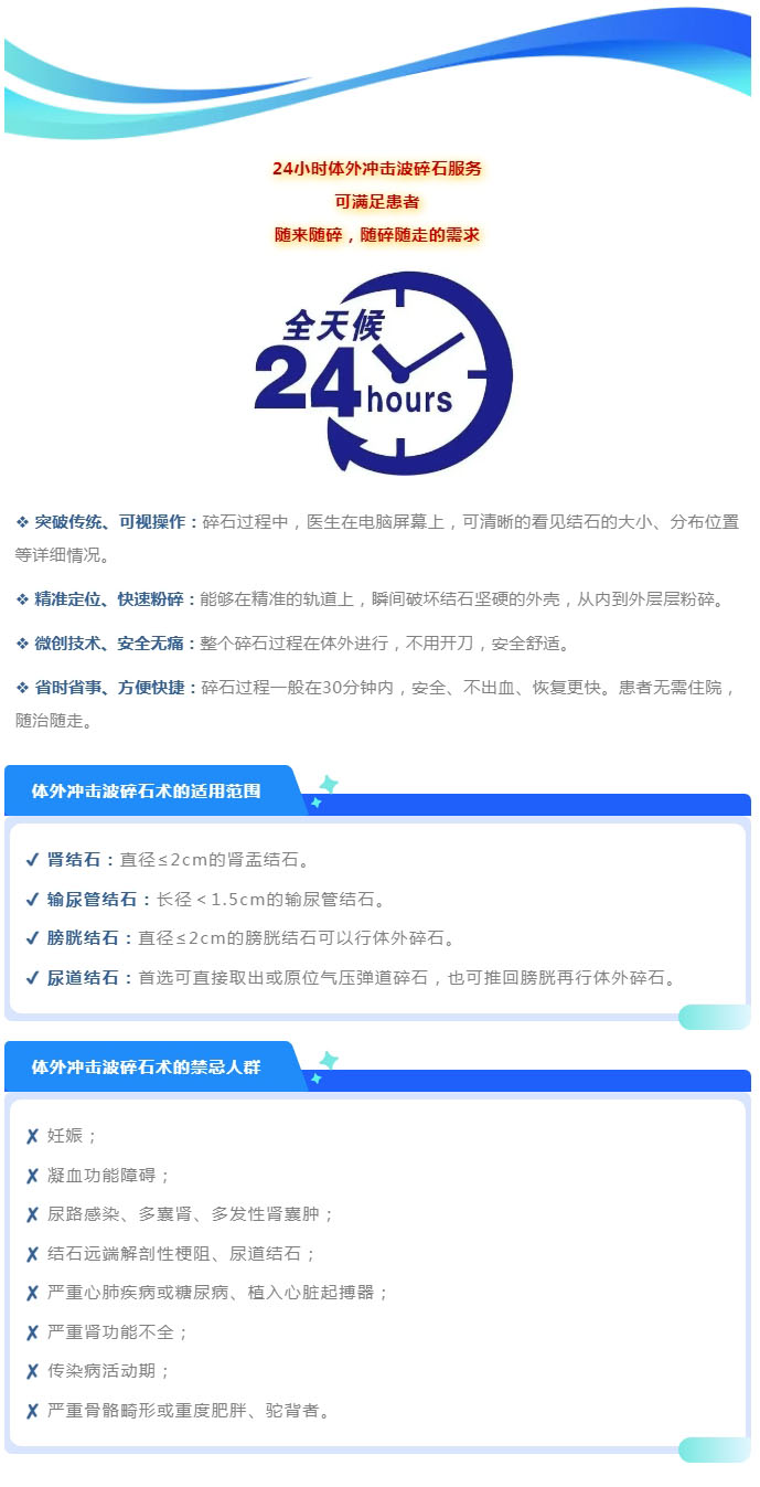 全年无休24小时体外冲击波碎石服务,随“石”解决大问题!