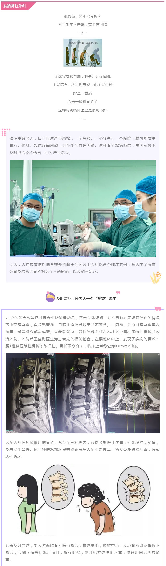 导读:【友谊脊柱外科】老人无故腰背痛、驼背,很可能是骨折了!