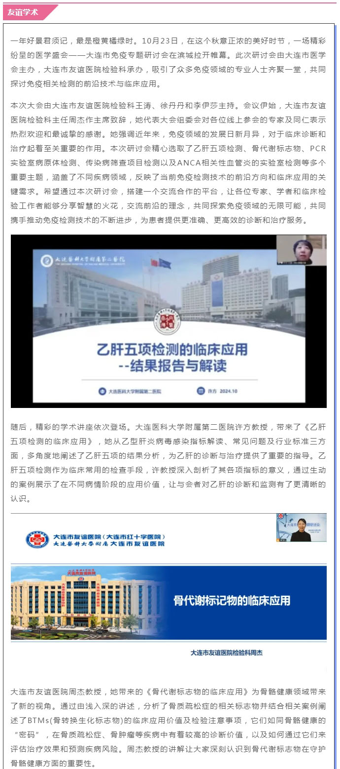 导读:【友谊学术】我院检验科成功举办大连市免疫专题研讨会