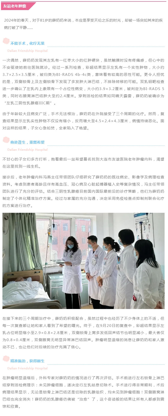 导读:【友谊老年肿瘤】从绝望到希望,高龄乳腺癌患者创造生命奇迹!