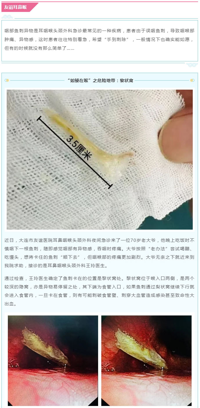 【友谊耳鼻喉】馒头噎、用醋泡都不好使…大爷来院拔出3.5cm超长鱼刺