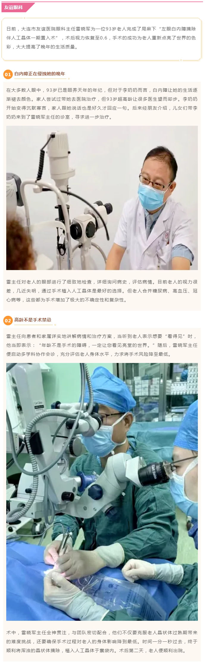 导读:【友谊眼科】“一定让您看见亮堂的世界”——93岁老人白内障手术成功!