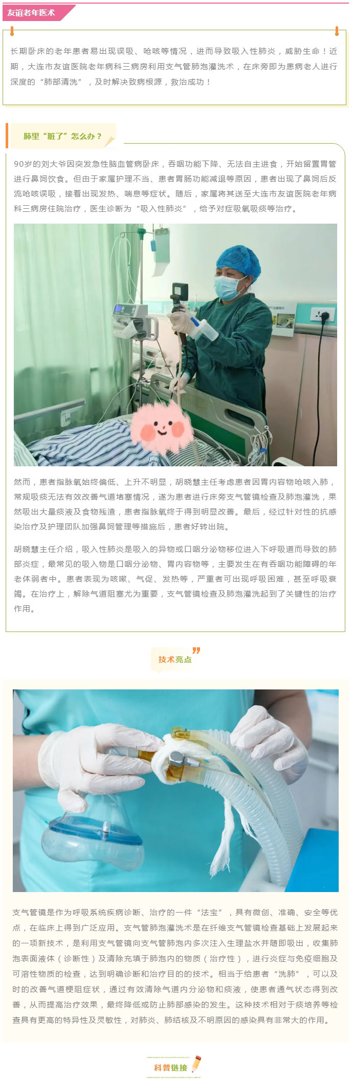 导读:【友谊老年医术】深度清洗,畅享呼吸——支气管镜检查及肺泡灌洗治疗