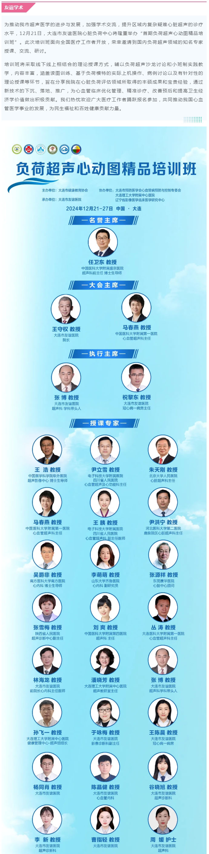 导读:【友谊学术】名医云集——首期负荷超声心动图精品培训班即将重磅登场!