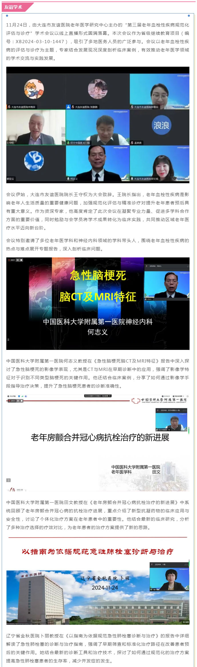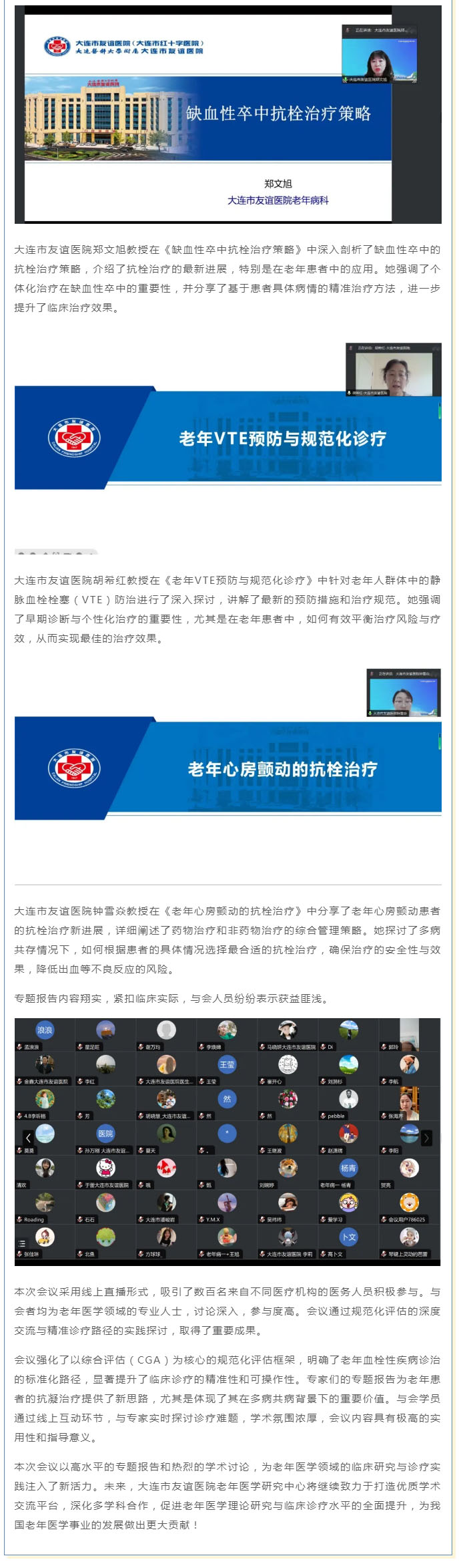 导读:【友谊学术】老年病科成功举办“第三届老年血栓性疾病规范化评估与诊疗”