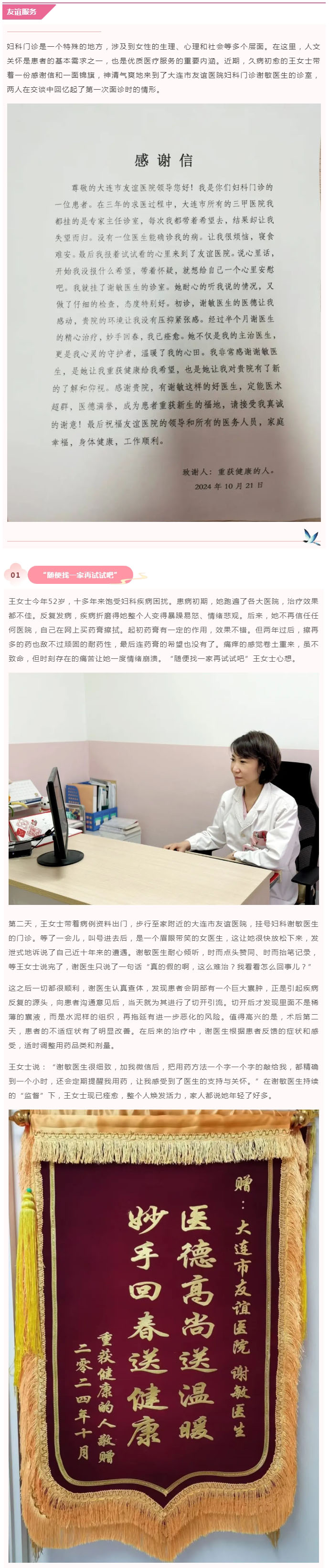 导读:【友谊服务】妇科门诊患者:“说实在的,刚开始来这我很忐忑…”
