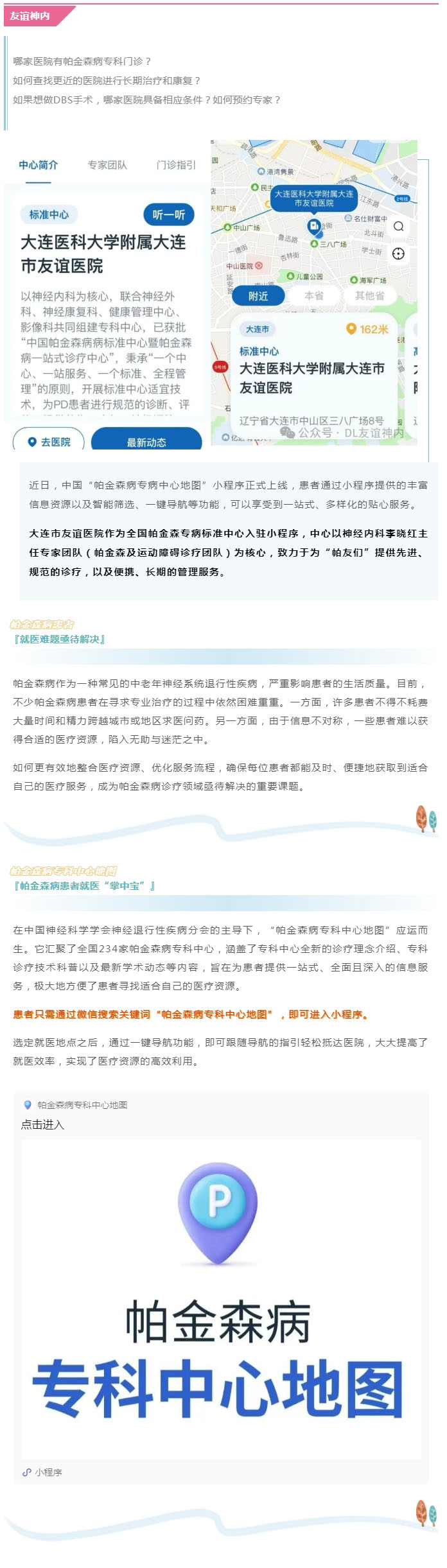 【友谊神内】“帕金森病专科中心地图”小程序上线啦!