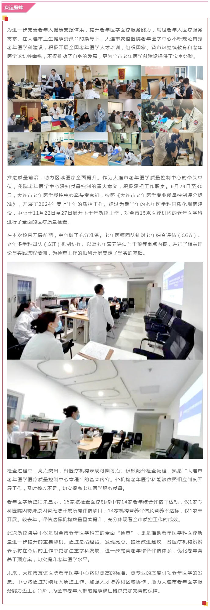 导读:【友谊登峰】聚焦质控,规范老年医学科建设
