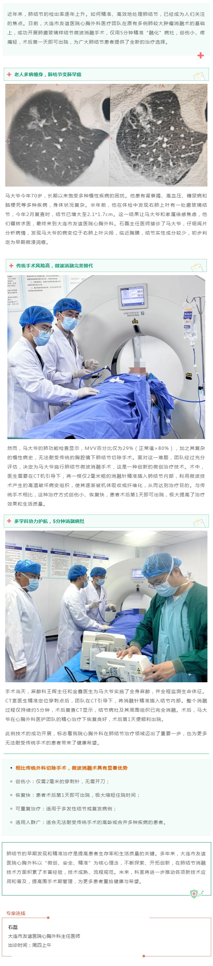 导读:【友谊技术】针尖下的精准阻击——微波消融5分钟瓦解肺磨玻璃样大结节!