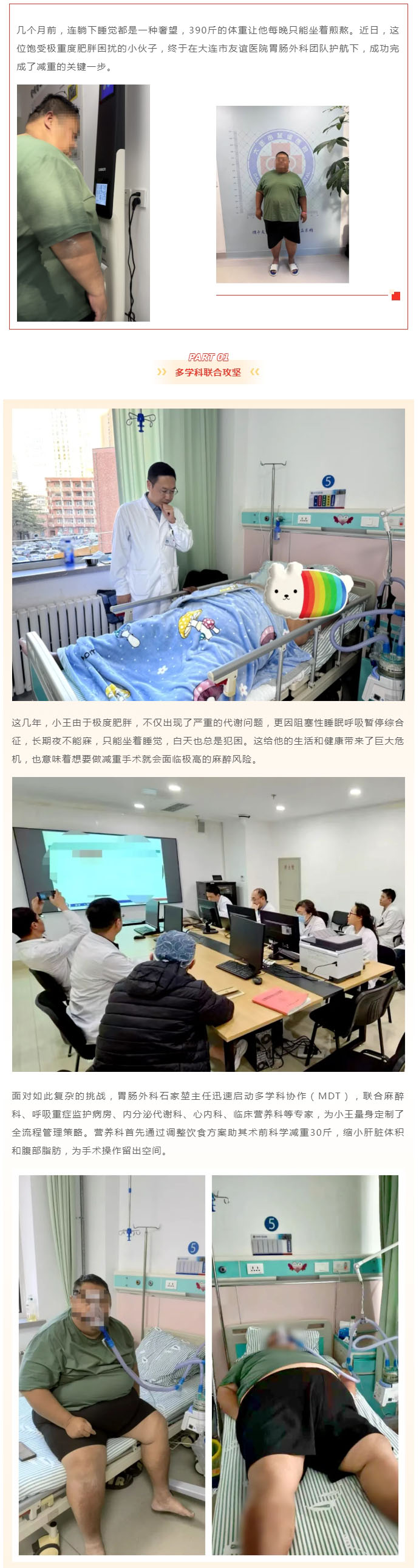 导读:【友谊胃肠外科】390斤、晚上坐着睡觉,减重术后他变了!