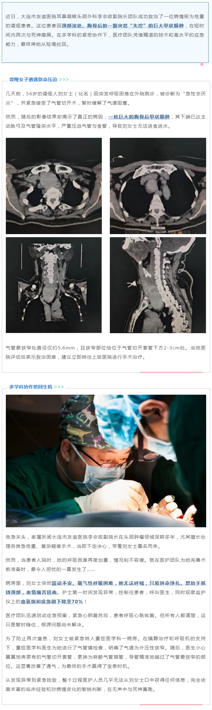 【友谊耳鼻喉】凶险!聋哑女子胸骨后甲状腺肿突发囊内出血,气道仅剩5.6毫米