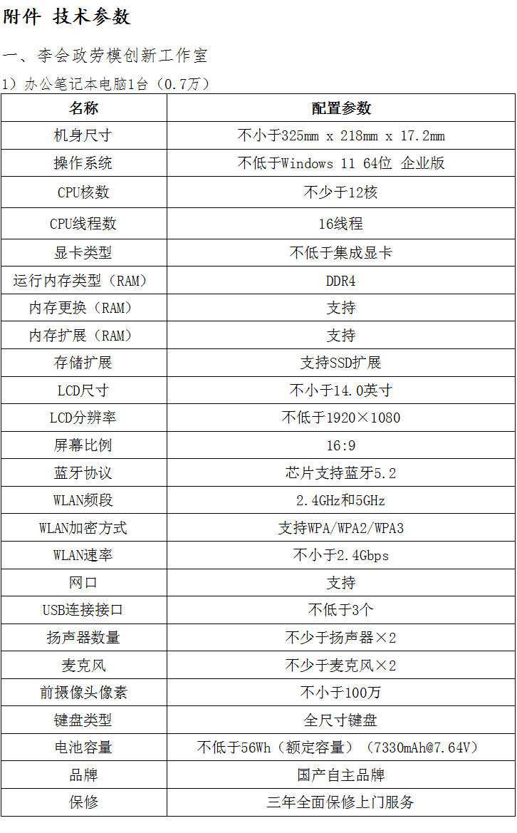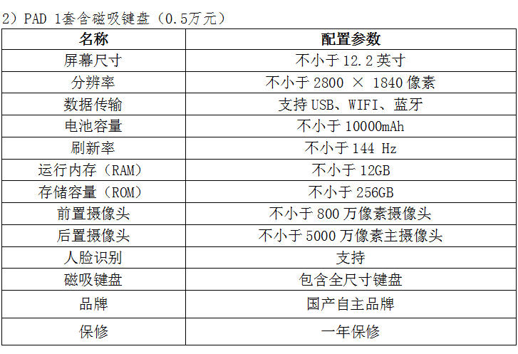 4、质保期要求:办公笔记本电脑质保期三年;PAD 含磁吸键盘、投影仪质保 期一年(自验收合格,设备正常运行、资质材料齐全且开具合格发票并入库日起计)