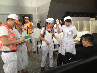 2013年夏季达沃斯经济论坛将于9月11日至13日在我市新落成的大连国际会议中心举行,为做好医疗保健工作,经过细致筹划、精心布置,8月30日上午,大连市卫生局保健处组织我院与大连市急救中心联合进行了一次达沃斯保健演练,大连医科大学附属第一医院、大连医科大学附属第二医院及大连市中心医院派人现场观摩。