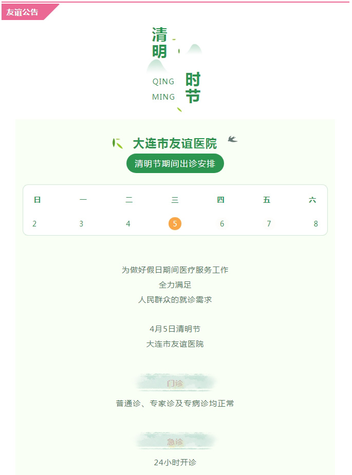 【友谊公告】清明假期正常开诊,全力保障市民健康!