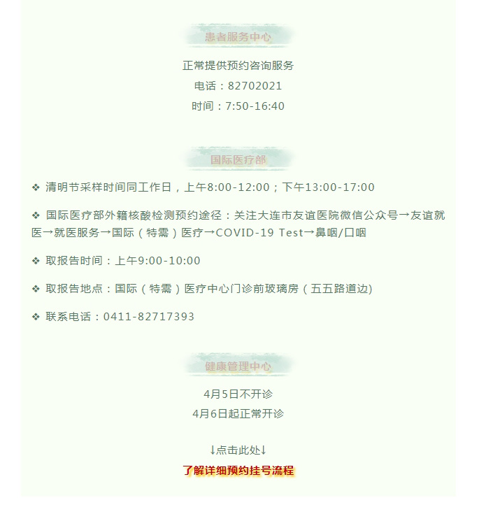 导读:【友谊公告】清明假期正常开诊,全力保障市民健康!