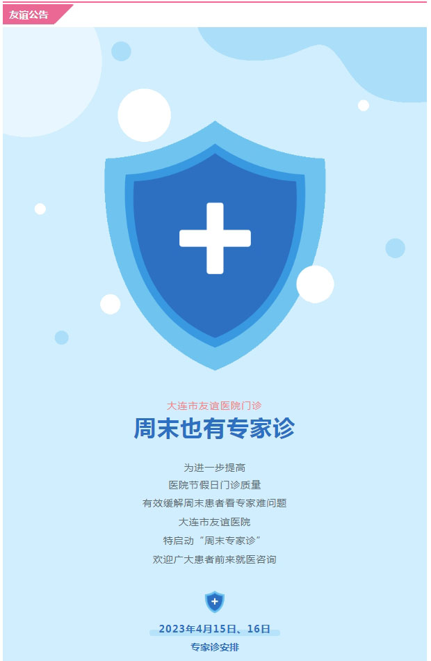 【友谊公告】大连市友谊医院4月份“周末专家诊”安排
