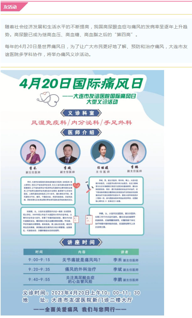 导读:【友活动】“4.20国际痛风日”义诊活动,不见不散!