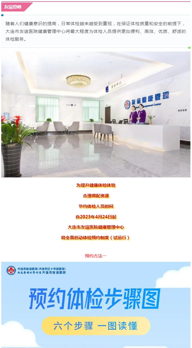 导读:广而告之!大连市友谊医院健康管理中心全面启动体检预约制