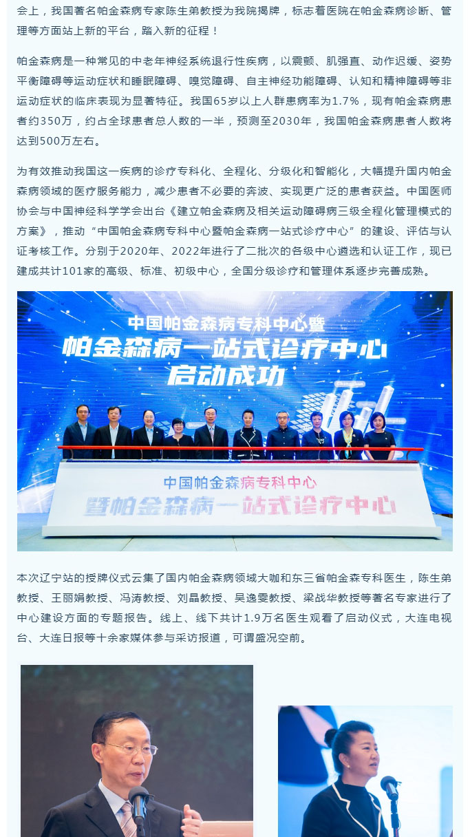 新平台新征程,扬帆奋楫正起航!——市友谊医院中国帕金森病专科中心暨帕金森病一站式诊疗中心揭牌成立