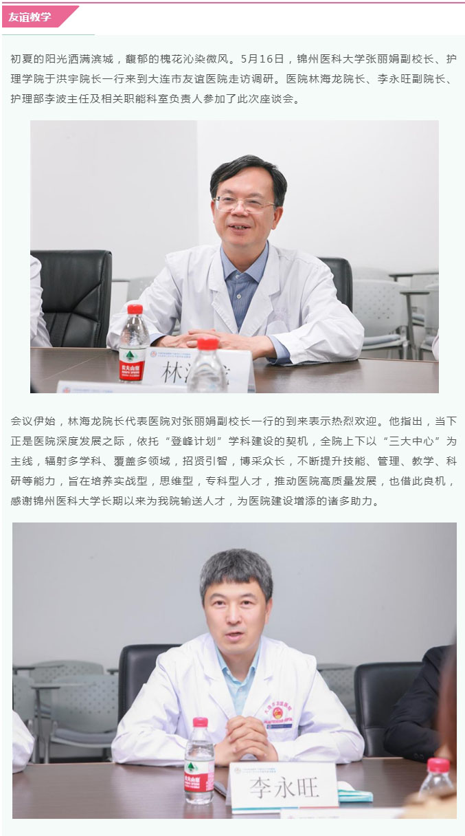 导读:【友谊教学】锦州医科大学张丽娟副校长、护理学院于洪宇院长一行赴我院走访调研