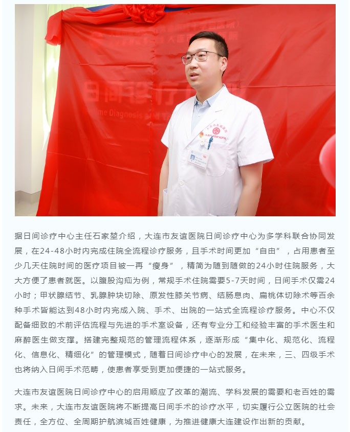 入院+手术+出院,48小时内完成!大连市友谊医院日间诊疗中心正式揭牌