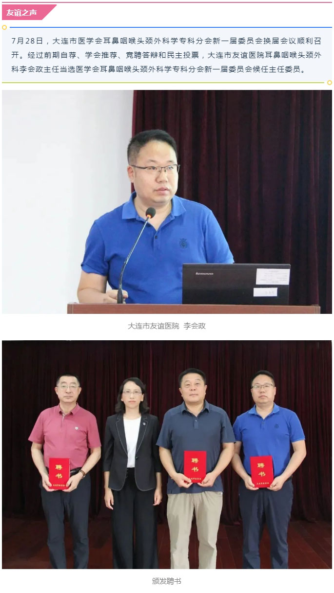 导读:【喜报】李会政主任当选大连市医学会耳鼻咽喉头颈外科学专科分会候任主任委员