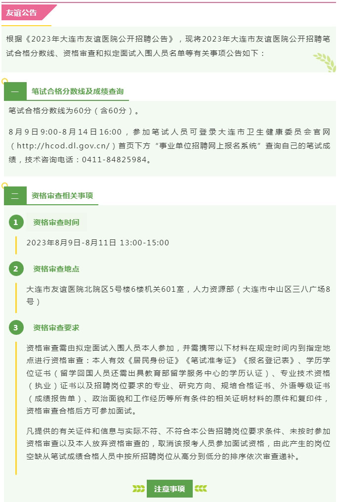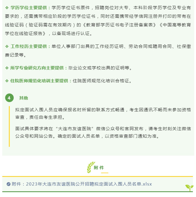 附件:2023年大连市友谊医院公开招聘拟定面试入围人员名单