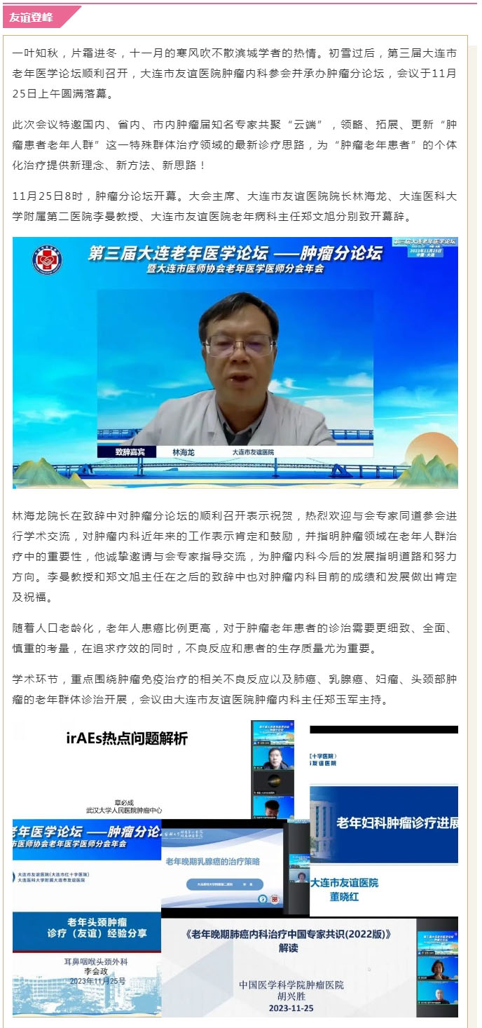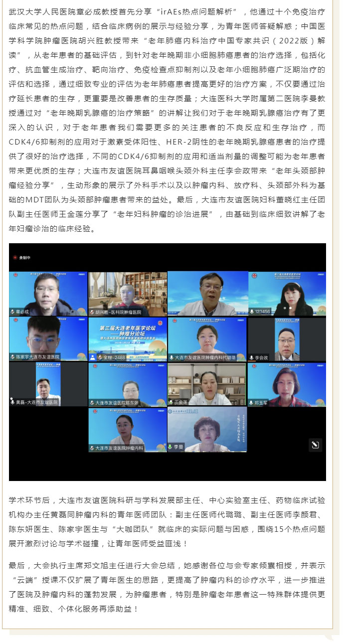 导读:【友谊登峰】“云端会议”——再次聚焦肿瘤老年患者的个体化治疗