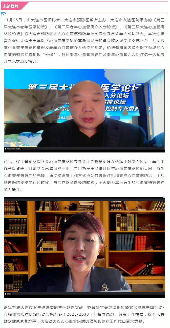 导读:【友谊登峰】群贤领航,多维聚焦老年心血管疾病