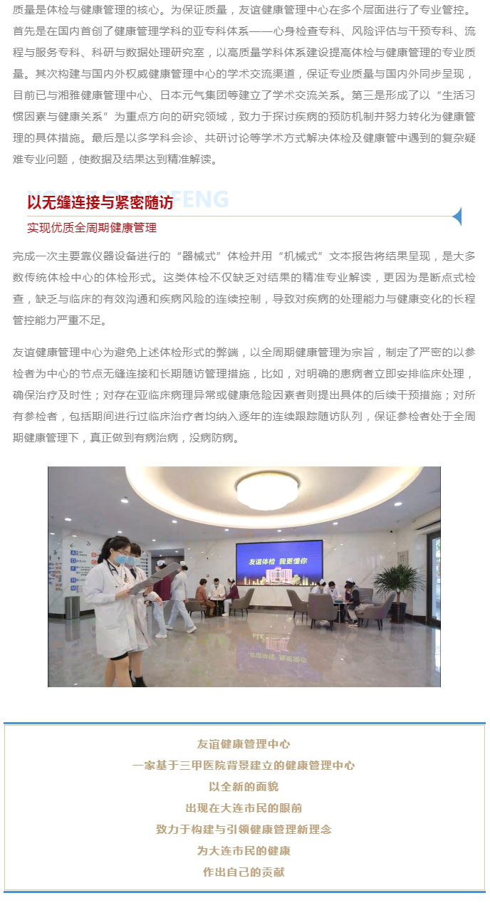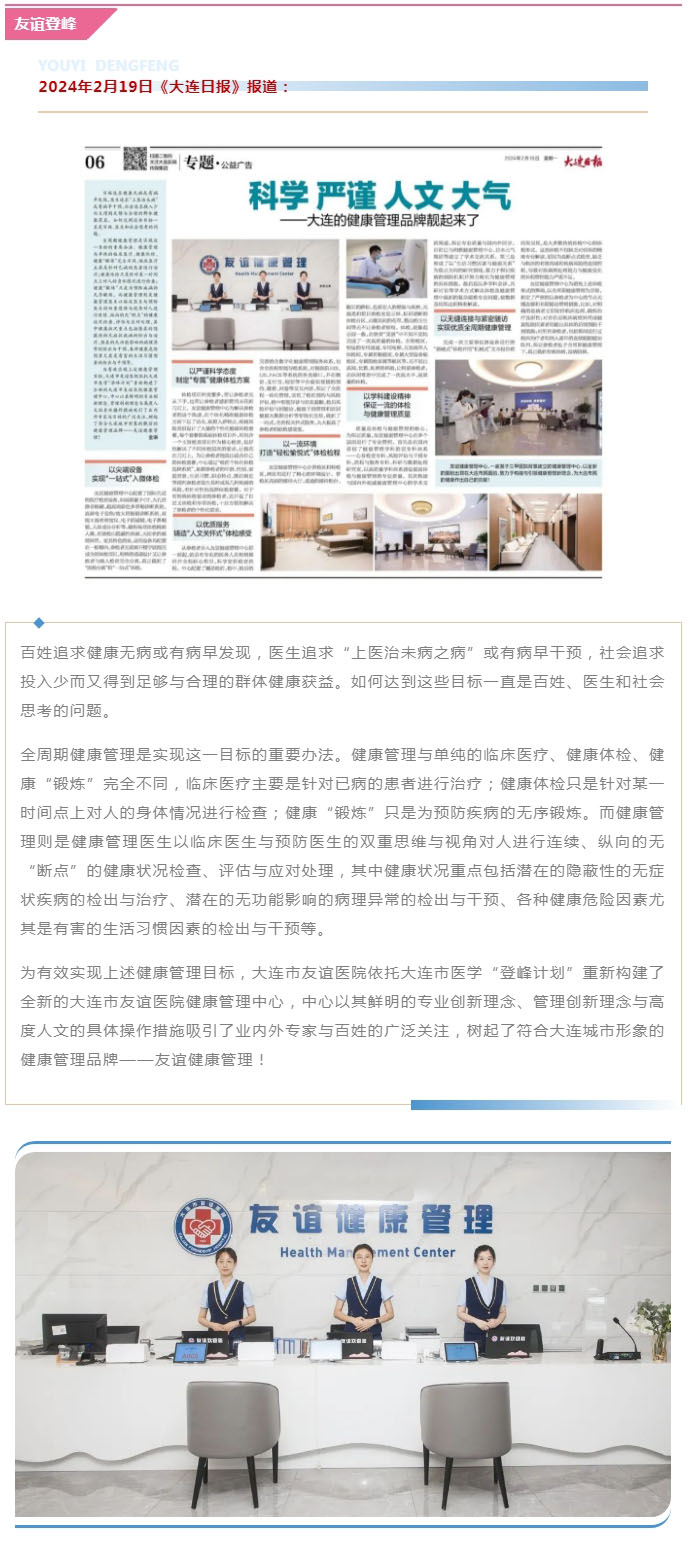 导读:【友谊登峰】《大连日报》报道:科学、严谨、人文、大气——大连的健康管理品牌靓起来了