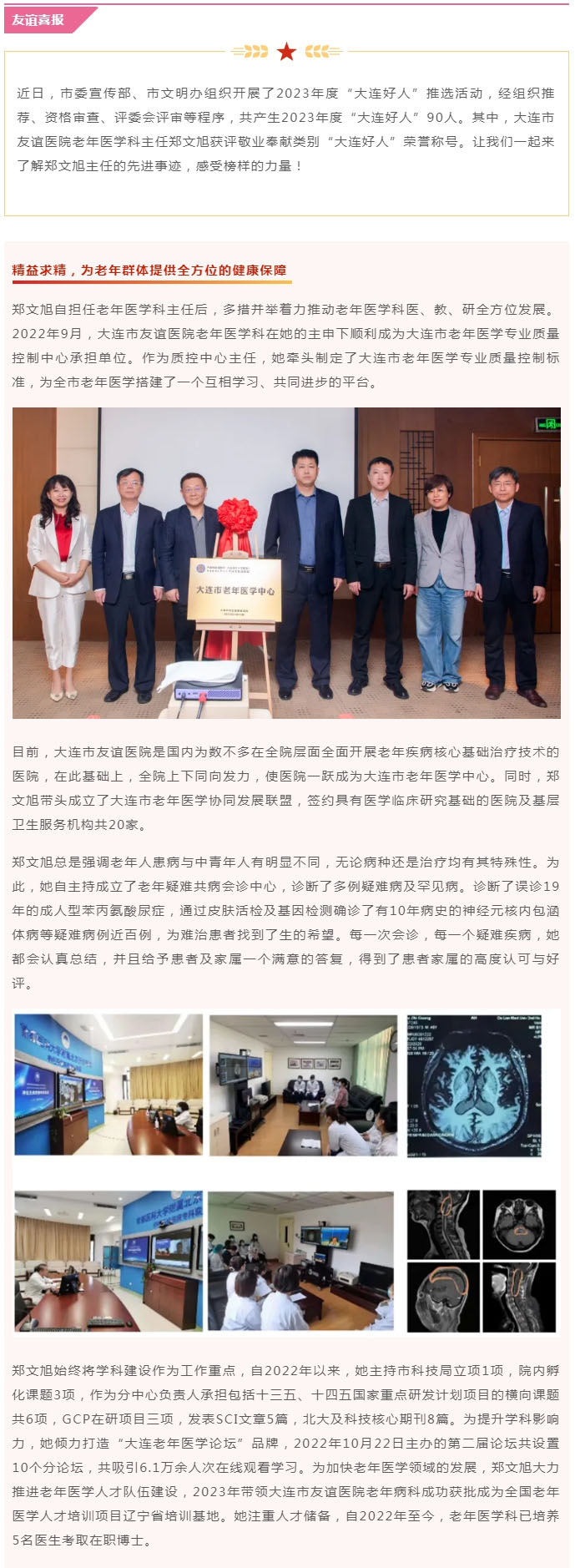 导读:【友谊喜报】郑文旭主任荣获2023年度“大连好人”称号!