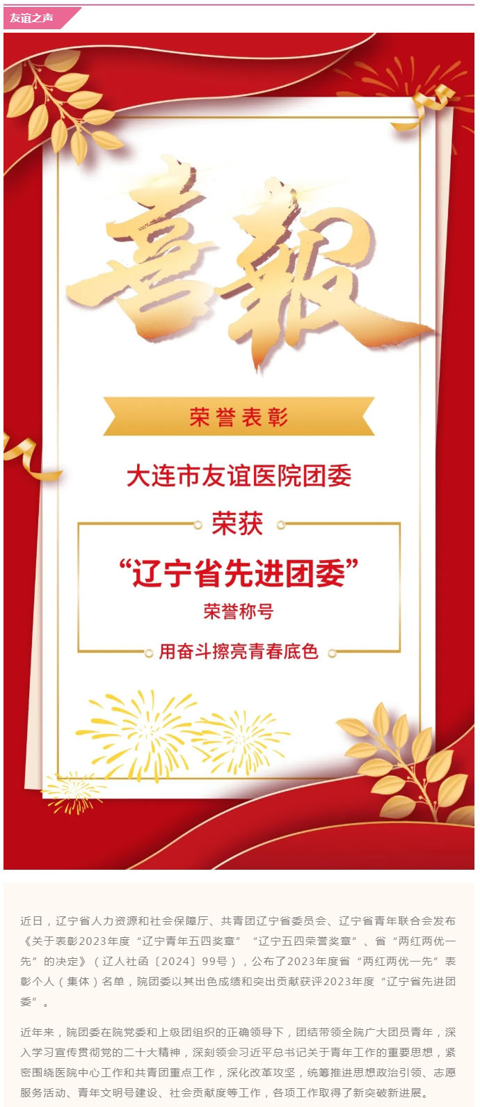 【喜报】大连市友谊医院团委荣获 “辽宁省先进团委”称号