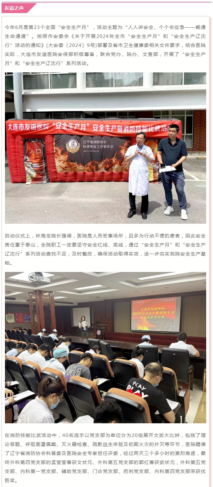 【友谊之声】多措并举讲安全——市友谊医院扎实开展“安全生产月活动”