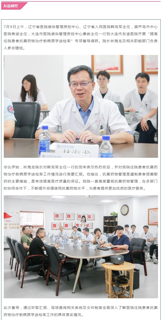 导读:【友谊感控】省院感质控中心到大连市友谊医院开展专项督导调研