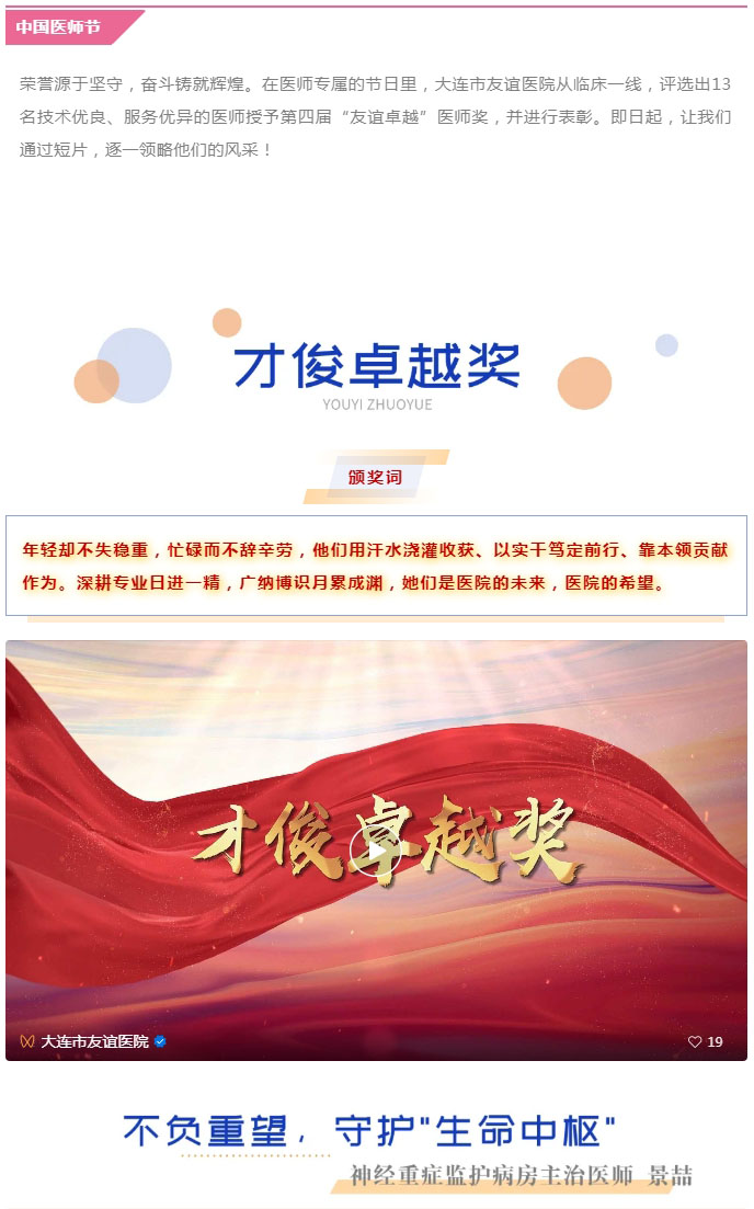 导读:【友谊卓越】青年医师,蒸蒸日上——才俊卓越奖