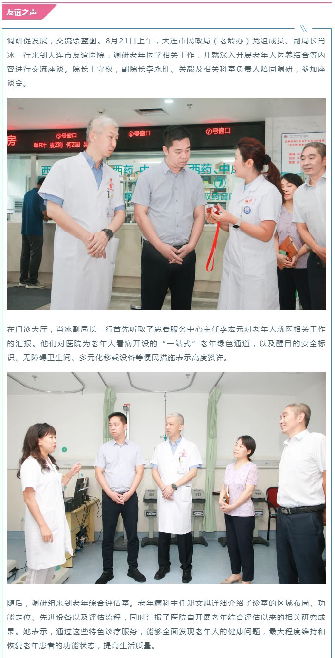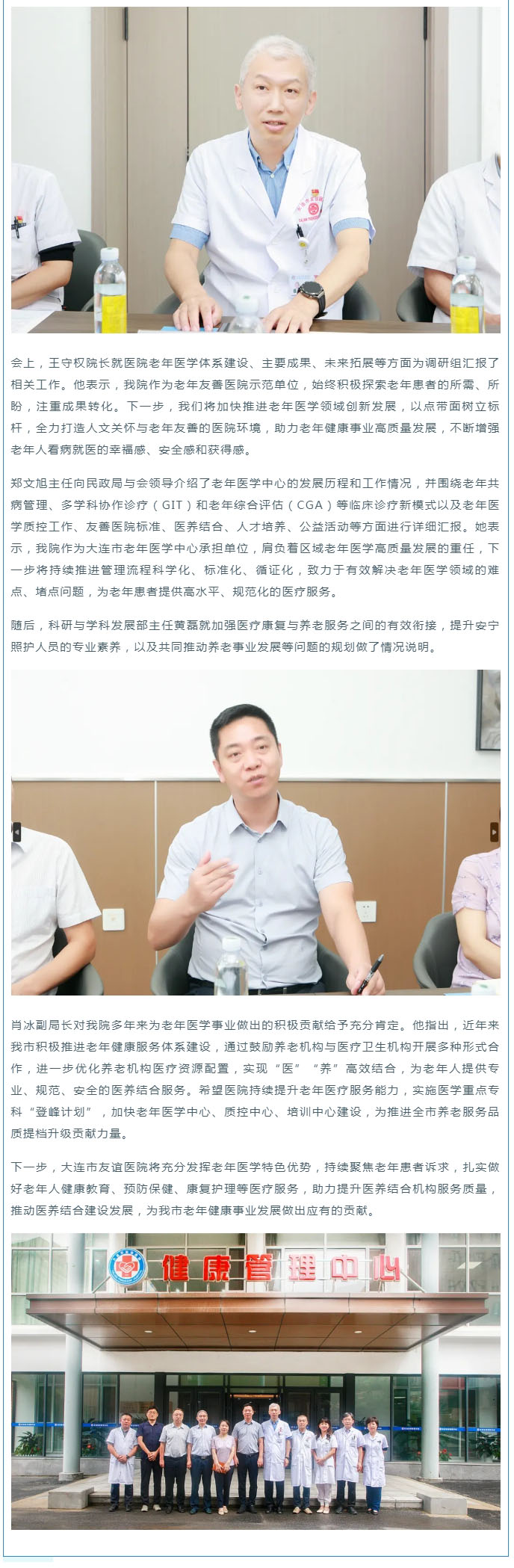 导读:大连市民政局(老龄办)领导到市友谊医院调研指导老年健康服务管理工作