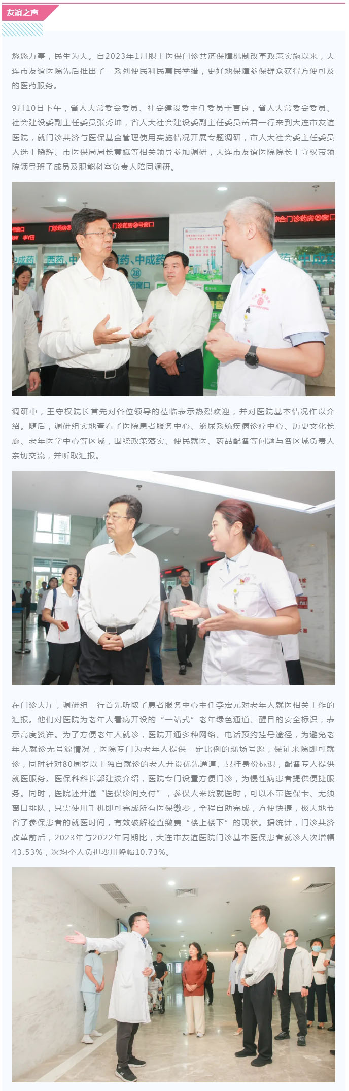 导读:省人大社会建设委一行到市友谊医院开展门诊共济与医保基金管理使用情况调研