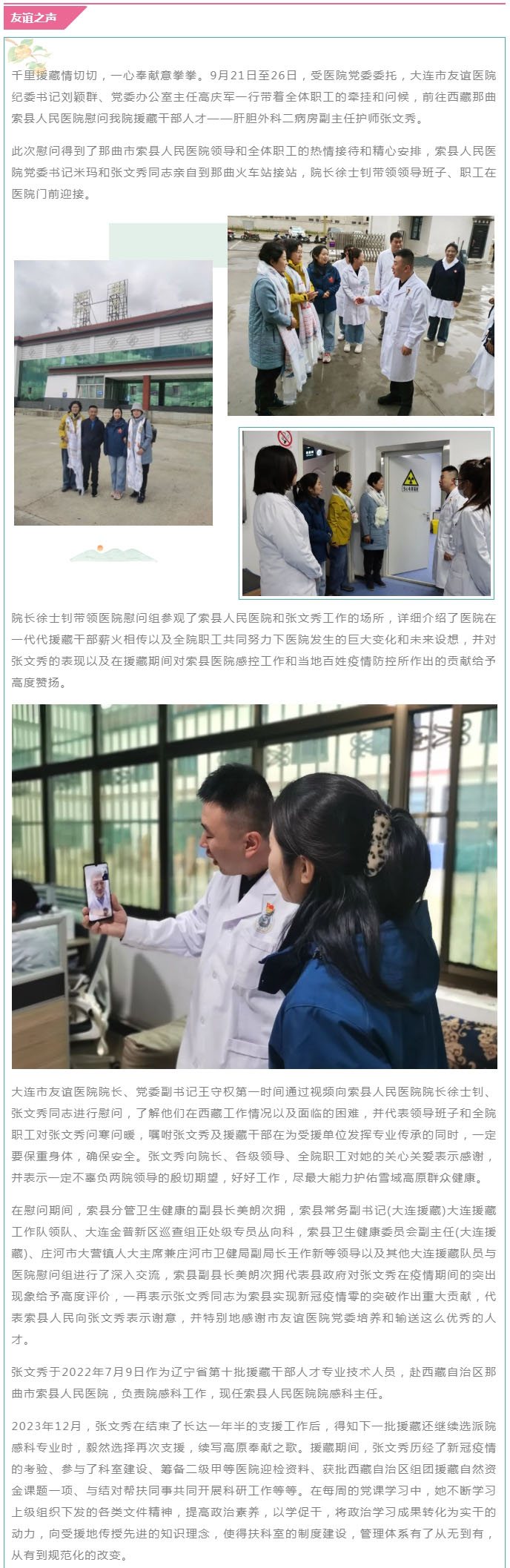 将温暖送上雪域高原!市友谊医院慰问援藏医疗队员