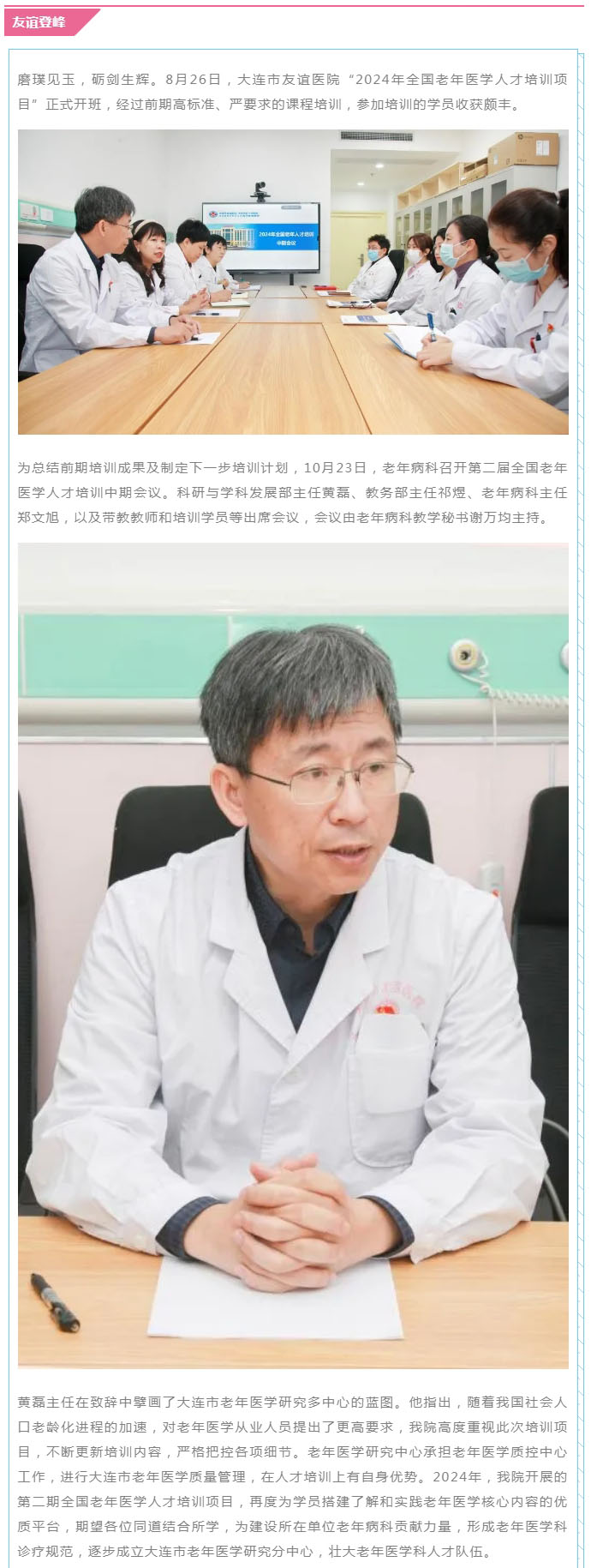 导读:【友谊登峰】市友谊医院成功举办2024年全国老年医学人才培训中期会议
