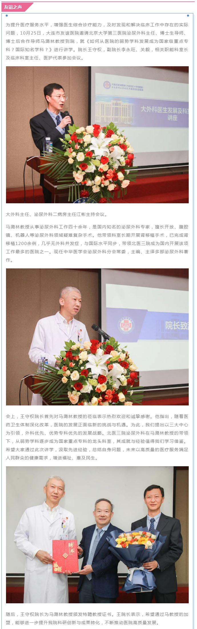 导读:【友谊之声】明方向,善作为!北医三院泌尿外科主任马潞林教授来院巡讲