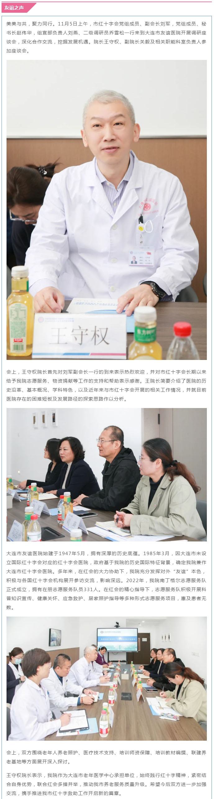 【友谊之声】市红十字会党组成员、副会长刘军一行到我院开展调研座谈