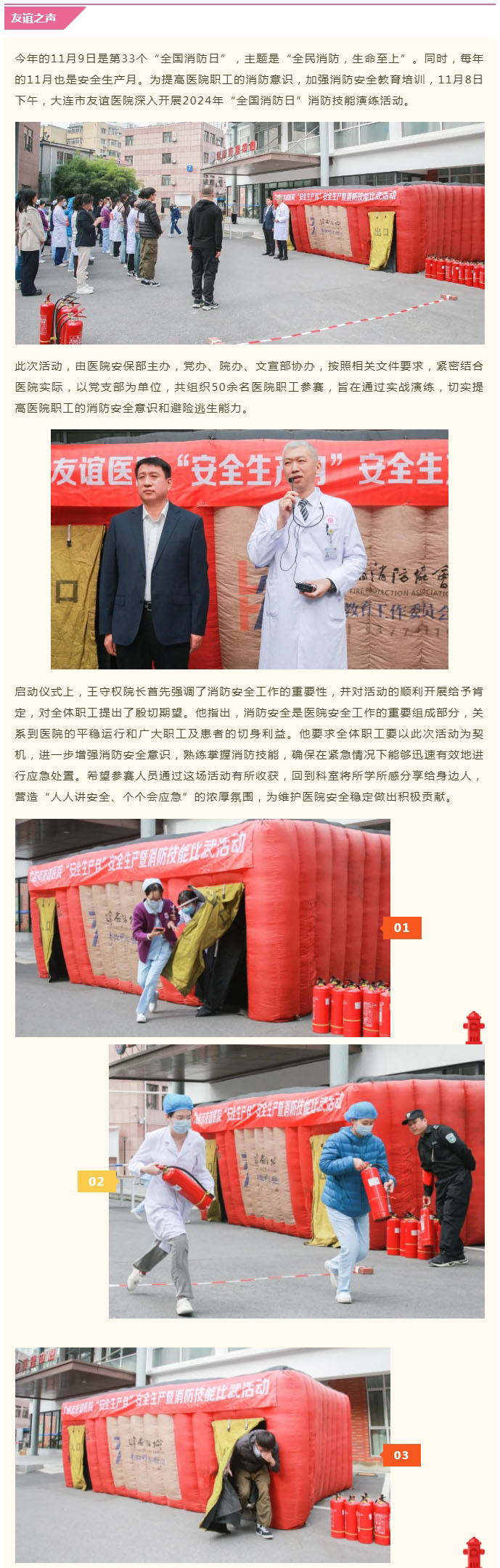 导读:【友谊之声】真烟真火,以赛促防——我院开展消防技能演练活动