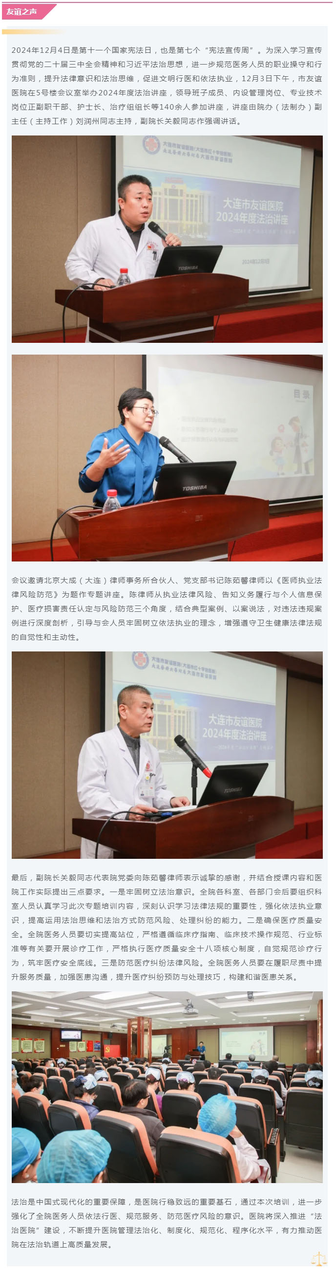 【友谊之声】大连市友谊医院举办2024年度法治讲座