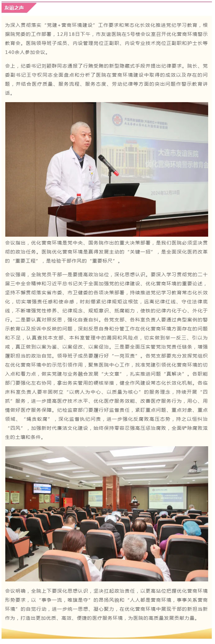 【友谊之声】市友谊医院召开优化营商环境警示教育会