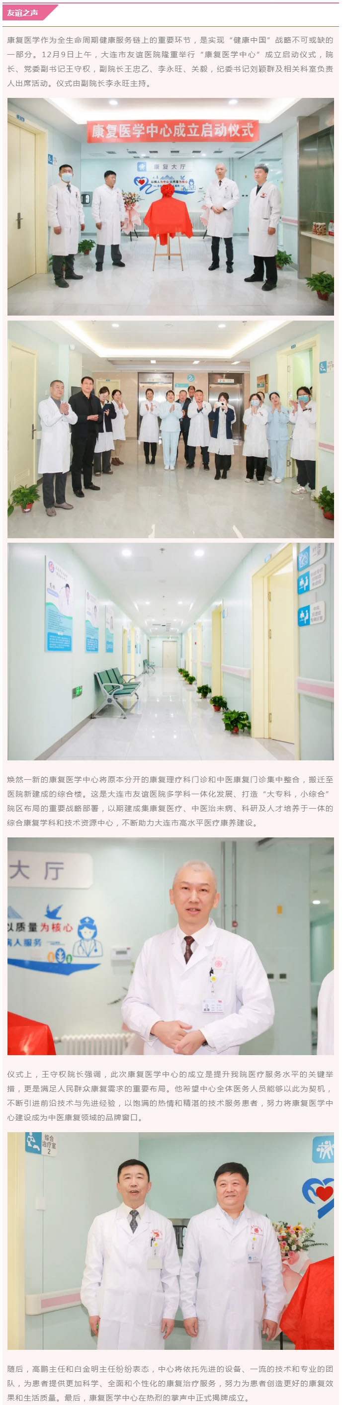 破旧立新!大连市友谊医院康复医学中心今日整装起航