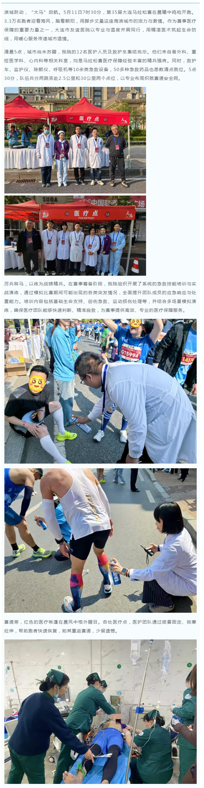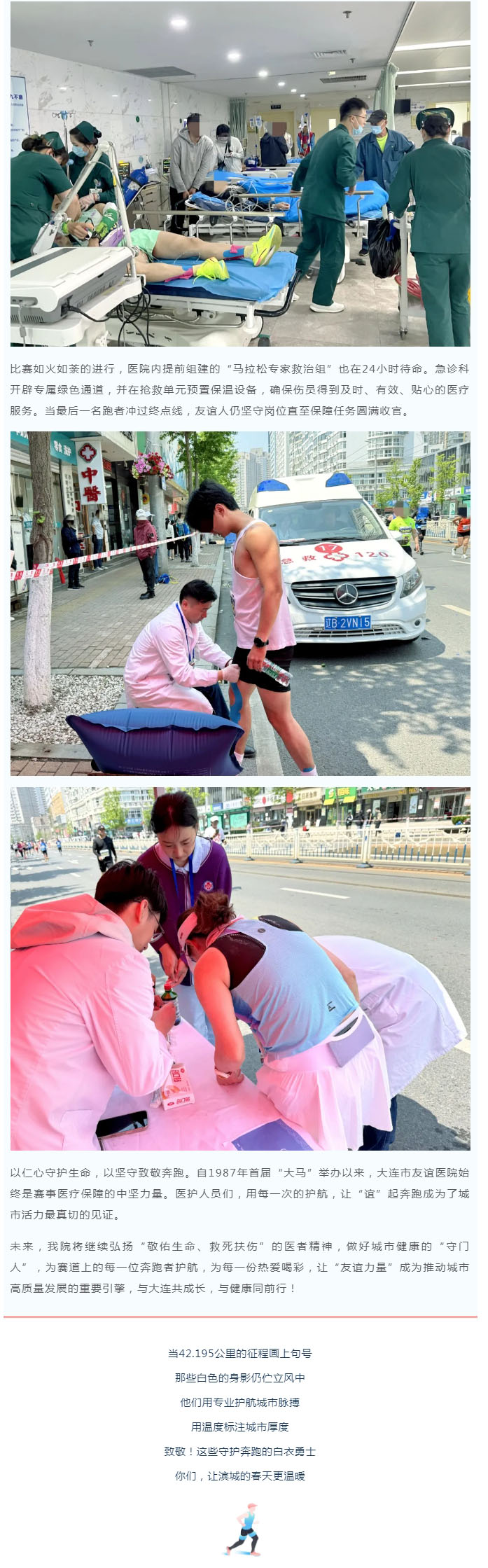 导读:“谊”起奔跑吧!大连市友谊医院为第35届“大马”全力护航!